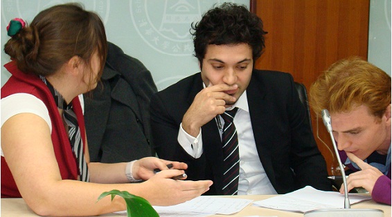 Following Prof. Zhang’s roundtable, the Debating Society held its first debate of the semester. On this occasion the motion was that continued Chinese investment into oil exploration would be beneficial to the world economy. Past debates have pitted the SPPM team against their counterparts at the Department of International Relations, but on this occasion teams were mixed. The motion was defended by Anatole Weinberger-Pang (MID ‘12) and Stephan Mothe (MID ’11), while Richard Ghiasy (MID ’11), Adrienne Joy (MID ’11), and Callum McQueen (IR ’11) represented the opposition. The debate was graciously moderated by Torian Richardson (MID ’11). The audience, which cast its pre- and post- debate votes to define the outcome, was composed of about 30 students from both MID cohorts, IR, IMPA and the Chinese MPA program.