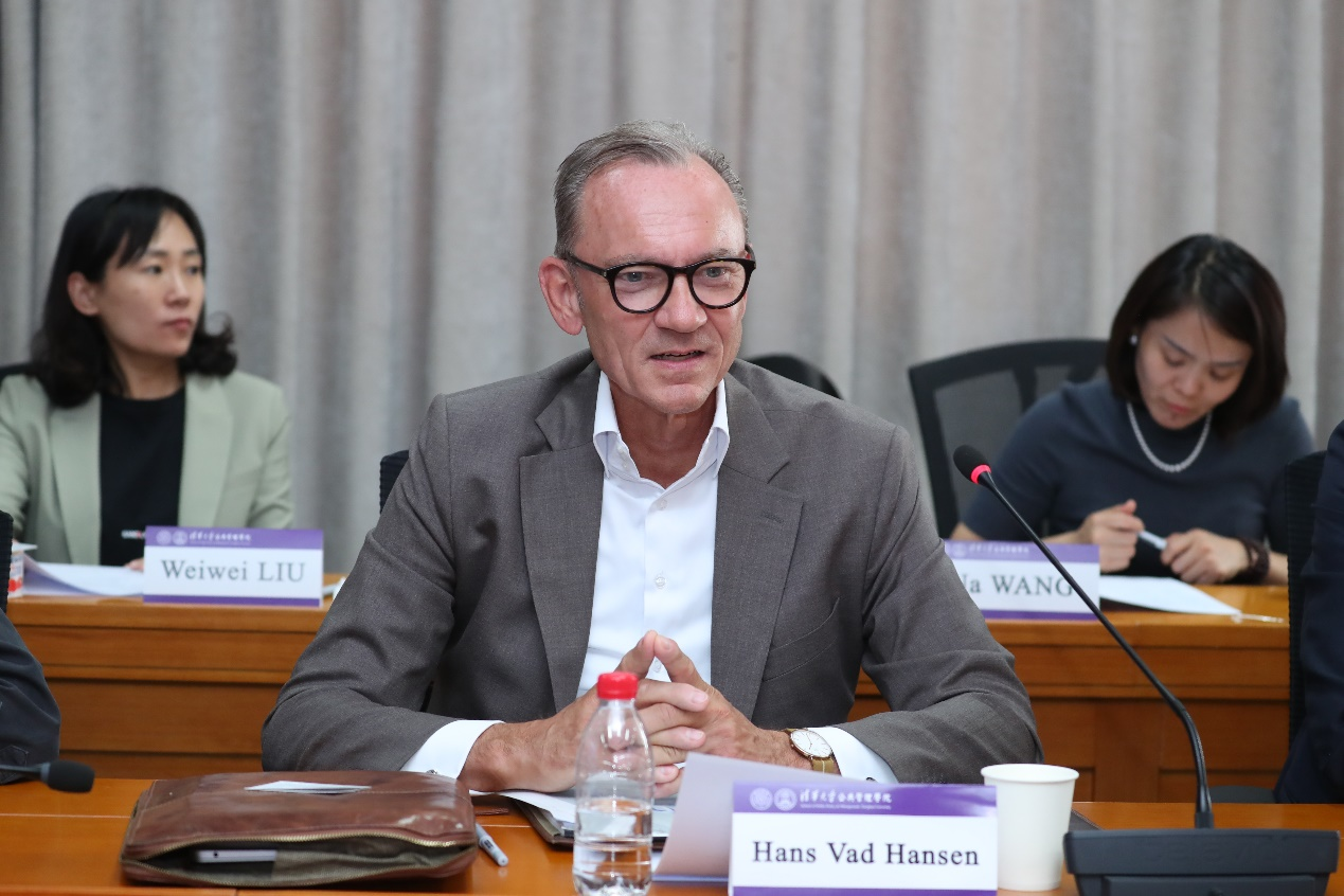 On behalf of Tsinghua SPPM, Zhu Xufeng extended a heartfelt welcome to Hans Vad Hansen and his team. He emphasized that Tsinghua SPPM not only offers high-quality educational resources for international students but also serves as a bridge for cross-cultural exchanges, fostering the growth of global talents. Given the school’s profound commitment to AI ethics and governance, professors and research institutions are actively engaged in relevant research. The IBM team's visit presents a valuable opportunity for faculty and students to engage in meaningful discussions with a multinational enterprise, deepening their understanding of the diverse applications of artificial intelligence in the corporate world.