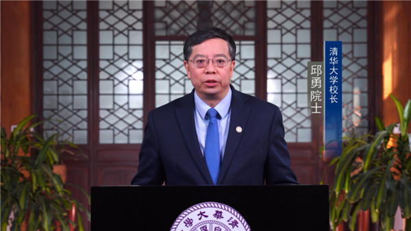 Qiu Yong delivering a video speech