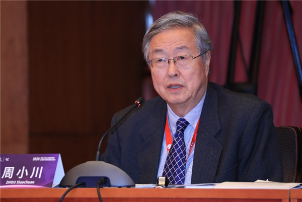 Zhou Xiaochuan delivering a keynote speech