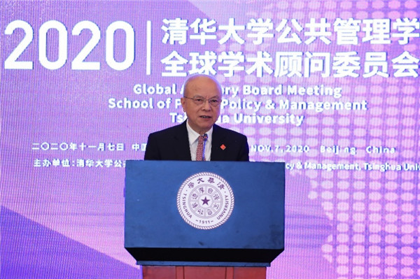 The 2020 Tsinghua SPPM Global Advisory Board (GAB) meeting was held at Tsinghua University on November 7. Twelve academic advisory members, including Ding Zhongli, Vice-Chairman of the Standing Committee of the 13th National People’s Congress and Chairman of the Central Committee of China Democratic League; Wan Gang, Vice Chairman of the 13th National Committee of the Chinese People’s Political Consultative Conference, Chairman of the Central Committee of China