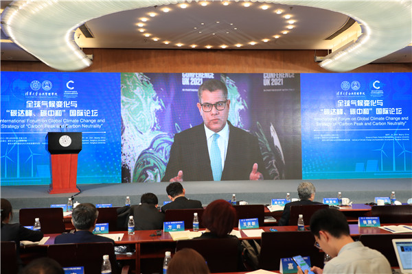 Qi Ye, Professor of the School of Public Policy and Management, Tsinghua University, delivered a speech themed “Build a Global Consensus on Climate Action.” He pointed out that, currently, 137 countries have promised carbon neutrality in different forms, and human society is walking toward the road of carbon neutrality. Each country’s competition in the world in low carbon and green development should be positive instead of negative competition. Therefore, he put forward one critical policy proposal: the international society needs to cherish jointly the consensuses reached on climate change and strive to achieve “three dos and three don’ts.” Society needs to seize the opportunity of COP26, including issues agreed by nearly 200 contracting parties, strive to enable the countries left out to participate in the discussion, and promote the development of green finance because the government needs to provide the capital and empowerment factors while improving its capacity building. The intellectual property matters shall be dealt with properly in the low carbon transformation. Society should not adopt a carbon border regulation mechanism and not amend the proposal in the Paris Agreement of controlling the temperature rise to be less than 2 ℃ to 1.5 ℃ directly. Each country should not execute carbon neutrality solutions beyond its development levels and national conditions.