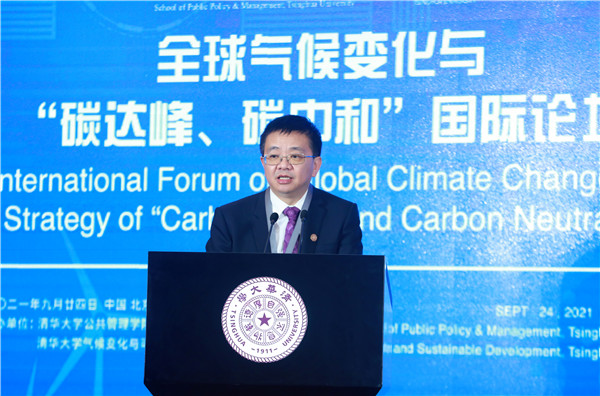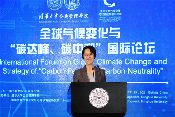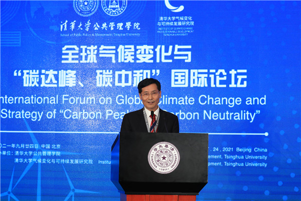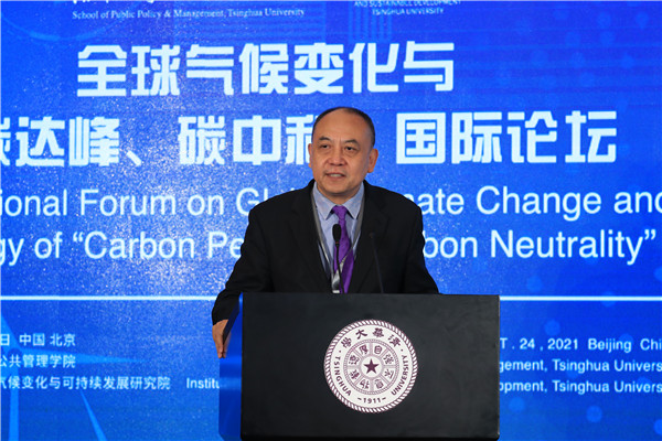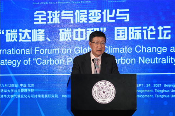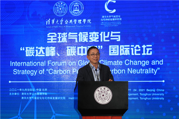 Peng Gang, Vice President of Tsinghua University, welcomed all the experts to visit the Tsinghua campus and attend the online conference. He pointed out that addressing climate change is a common cause of human society. Universities should shoulder important tasks of the times to strive to achieve carbon peak by 2030 and carbon neutrality by 2060. In recent years, Tsinghua University has paid great attention to climate change and sustainable development, giving full play to the advantages of subjects, scientific research, talents, and international cooperation. It has vigorously strengthened the construction of think tanks and established a series of high-level, international, and branded forums. The university took the lead in establishing the Global Alliance of Universities on Climate, established the Institute for Carbon Neutrality, and actively provided advice and suggestions at the high-level conferences of United Nations Environment Program, Global Climate Action Summit, and the upcoming COP26. This Forum focuses on multiple subjects, such as national strategies, government roles, market innovation, and social forces; absorbs the wisdom of all parties; and promotes integration and interconnection, which is of great significance for Tsinghua University and the School of Public Policy and Management to shoulder important missions in the historical process of building a community with a shared future for humankind and achieving sustainable development. He hoped that all members and experts would fully express their views, contribute their new knowledge, and jointly depict the blueprint of green development globally and the bright future of a community.