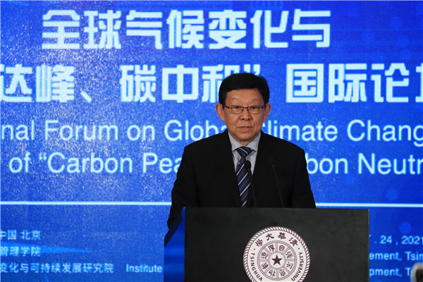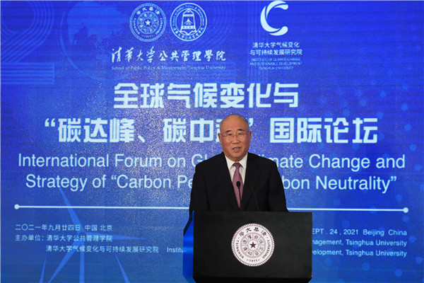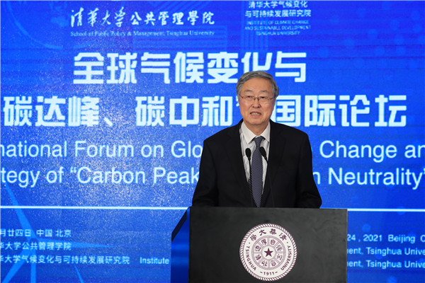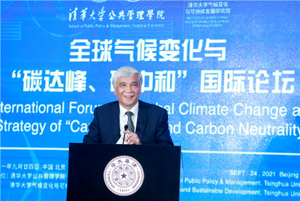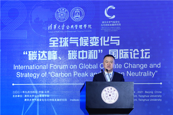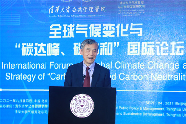 On September 24, the International Forum on Global Climate Change and Strategy of “Carbon Peak and Carbon Neutrality” was held successfully at the Reception Hall of the Main Building of Tsinghua University. The Forum is jointly sponsored by the School of Public Policy and Management and the Institute of Climate Change and Sustainable Development, Tsinghua University. This Forum is one of the series activities of Global Advisory Board of Tsinghua SPPM in 2021. Ding Zhongli, Vice-Chairman of the Standing Committee of the 13th National People’s Congress and Chairman of the Central Committee of the China Democratic Leaguel; Zhou Xiaochuan, Vice Chairman of the 12th National Committee of the Chinese People’s Political Consultative Conference and Vice Chairman of the Boao Forum for Asia; Chen Deming, Former Minister of Commerce, Former Chairman of the Association for Relations Across the Taiwan Straights, Former Vice Director of National Development, and Reform Commission, Director of the Institute of Taiwan Studies of Tsinghua University; Xie Zhenhua, China’s Special Representative on Climate Change and Vice Chairman of China Council for International Cooperation on Environment and Development; Wu Hongbo, Special Representative of the Chinese Government on European Affairs, Former Under Secretary-General of the United Nations, and Co-Director of the Institute for Sustainable Development Goals of Tsinghua University; Erik Solheim, Senior Advisor of the World Resources Institute and Former Under Secretary-General of the United Nations; Alok Sharma, Full-time President for COP 26, the 26th United Nations Climate Change Conference; Yong-Hak Kim, President Emeritus of Yonsei University and Chairman of the Board of SK Telecom; Ngaire Woods, Dean of the Blavatnik School of Government of Oxford University; Danny Quah, Chairman (International) of 2021 THU SPPM Global Advisory Board and Dean of the Lee Kuan Yew School of Public Policy, National University of Singapore; and other domestic and overseas scholars and representatives of government and international institutions were invited to attend this Forum. More than 100 persons attended this Forum, including Peng Gang, Vice President of Tsinghua University; Jiang Xiaojuan, Member of the Standing Committee of the National People’s Congress, Vice Chairperson of the Committee of Social Construction of the 13th National People’s Congress, and Dean of School of Public Policy and Management of Tsinghua University; teachers and students of Tsinghua University.