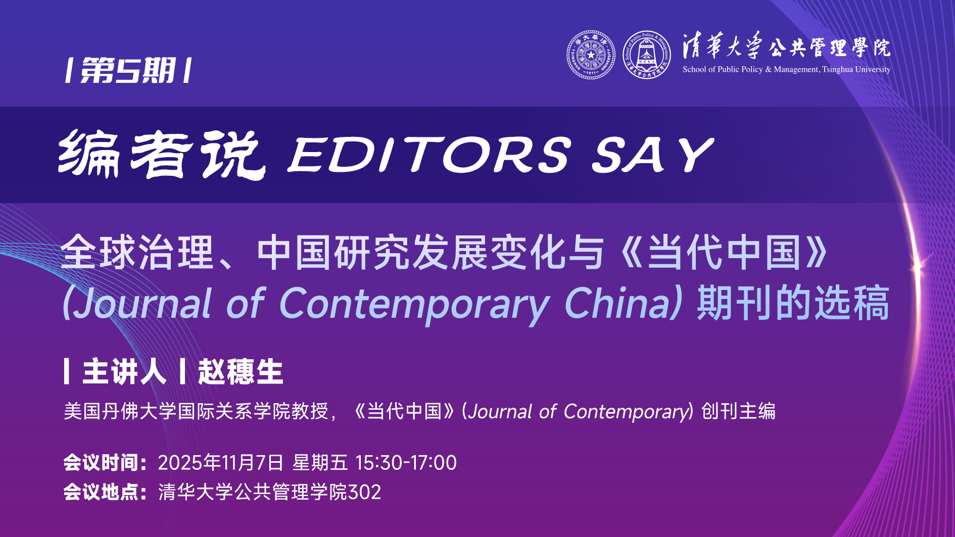 “编者说”第5期 主编视角:全球治理、中国研究发展变化与《Journal of Contemporary China》期刊的选稿(2025年11月7日 星期五 15:30-17:00)