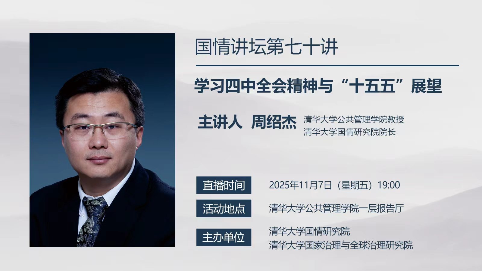 国情讲坛第70讲:学习四中全会精神与“十五五”展望(2025年11月7日 星期五 19:00)