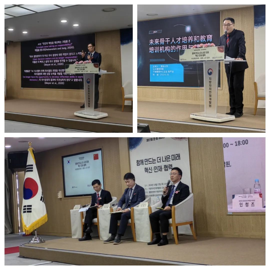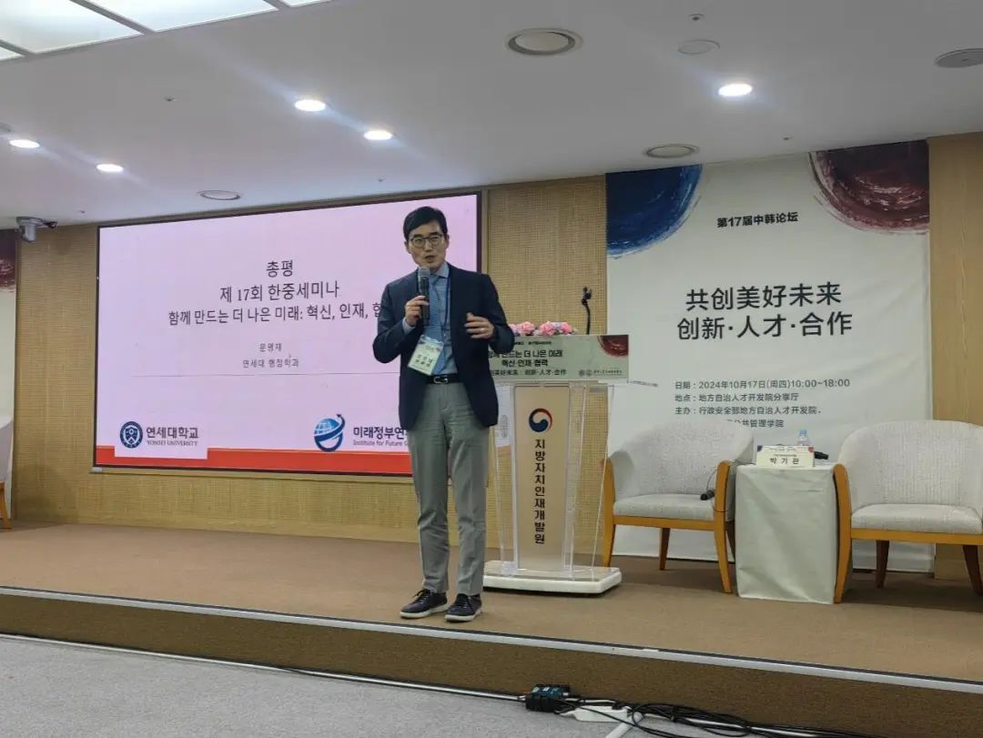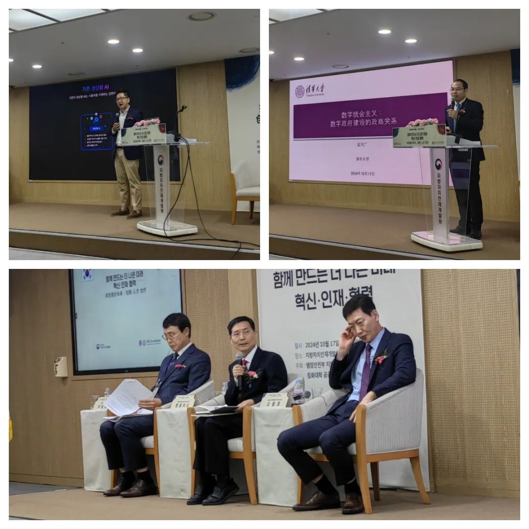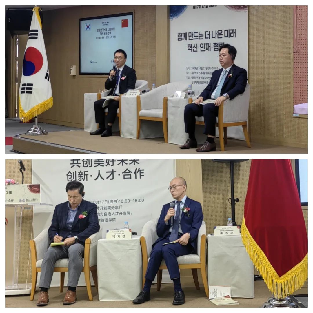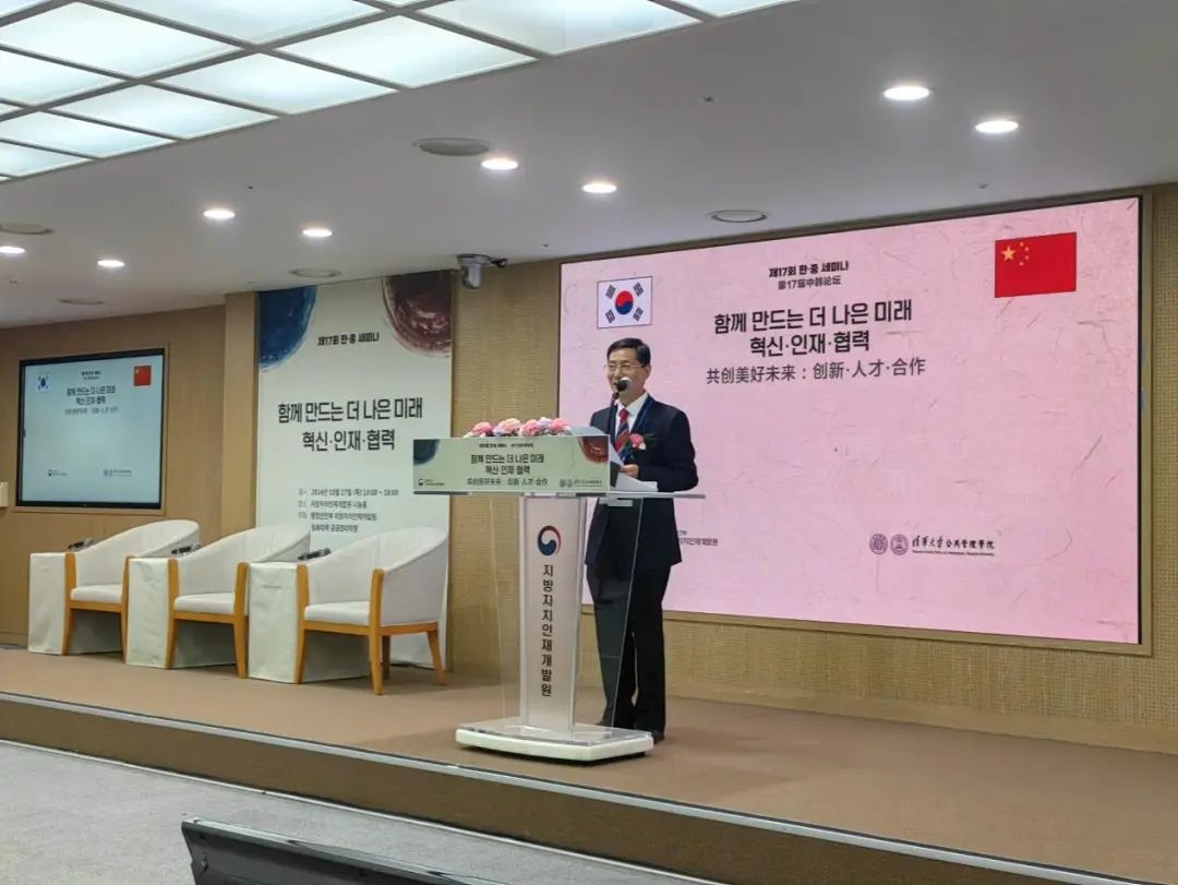 10月17日,由韩国内政安全部地方自治人才开发院(행정안전부,지방자치인재개발원,英文简称“LOGODI”)和PP电子(简称“清华公管学院”)共同主办的“第十七届中韩国际论坛”在韩国全罗北道全州市成功举办。本届会议的主题是“共创美好未来—创新·人才·合作”,来自中韩两国的学者代表参会,就与中韩两国切实相关的话题进行交流和深入探讨。清华公管学院党委书记彭宗超、教授巫永平、副院长殷成志、副教授李应博、干部教育中心主任张严冰,以及PP电子社会科学学院(简称清华社科学院)副院长孟天广应邀赴韩参加。清华公管学院院长朱旭峰以视频方式向论坛致贺词。