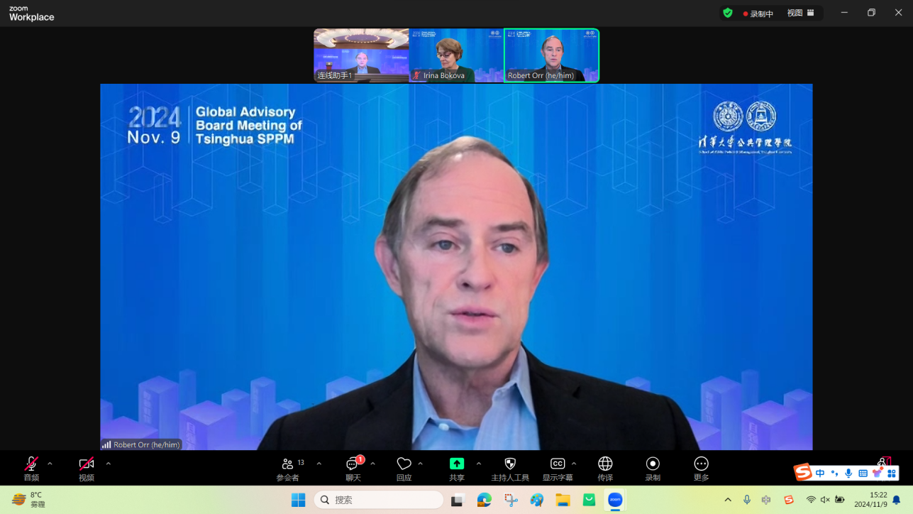 本次顾问委员会会议以“智能时代的公共治理与全球合作”为主题,包含开幕式、闭门会议和现代治理论坛。美国马里兰大学公共政策学院院长、联合国秘书长气候变化问题特使欧伦波(Robert Orr)主持闭门会议。