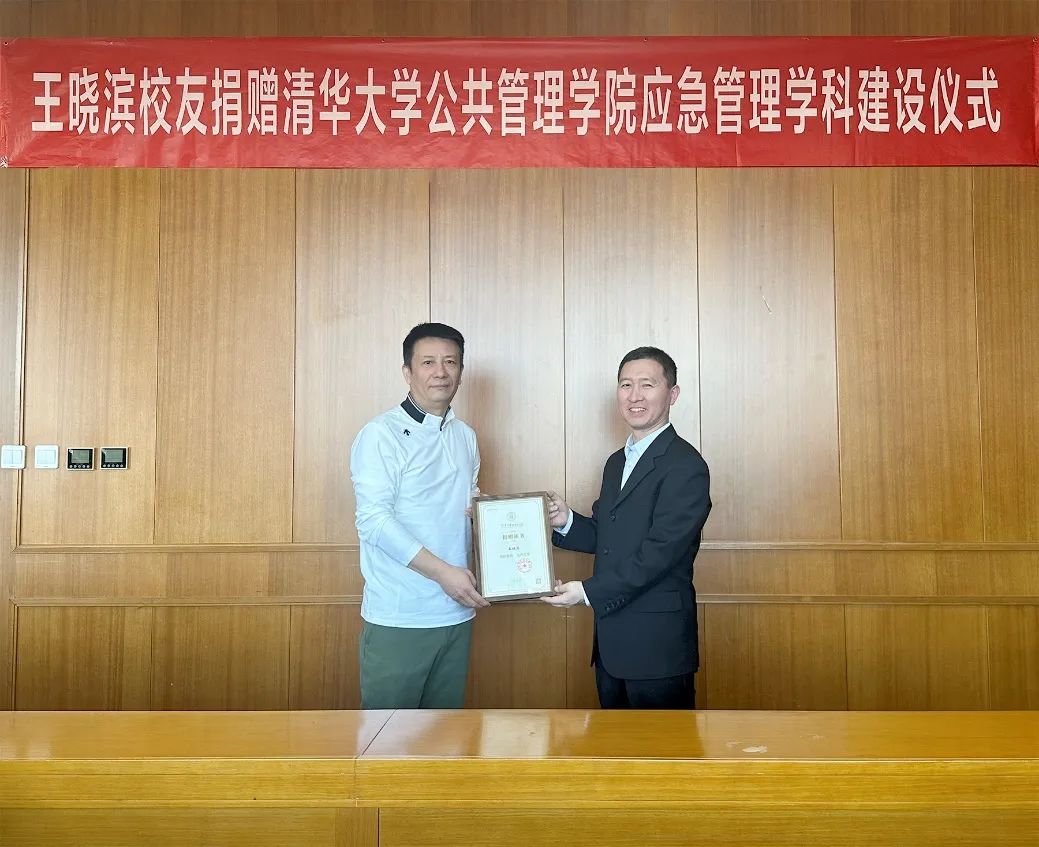 朱旭峰代表学院对王晓滨校友的慷慨捐赠表示衷心感谢,他回顾了公管学院应急管理学科建设和人才培养的历程,简要介绍了应急管理研究基地近年的工作重点。朱旭峰表示,王晓滨校友长期以来关注并支持母校的发展,本次捐赠将为公管学院应急管理学科的教学、科研和实践提供更为坚实的资金和精神支持,也将进一步推动学院在应急管理学科领域持续创新。未来学院和依托学院相关智库机构将与北京旻泰安全科技服务有限公司携手,继续为社会培养更多能有效应对复杂危机挑战的应急管理专业人才。