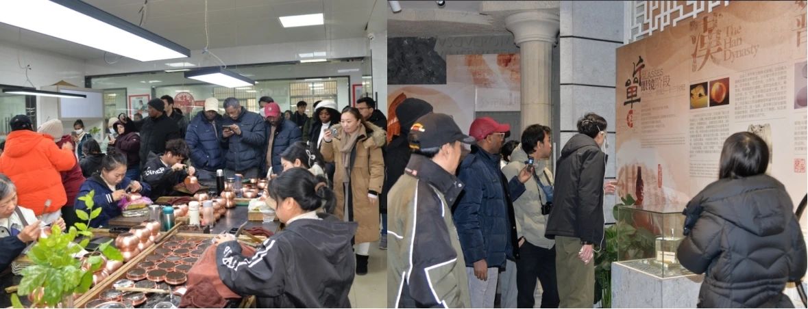 1月9日,师生一行前往鹰潭市,首站来到梅园街道九一二社区,实地考察居民活动中心,调研社区智慧化改造、基层治理和社区服务方面的先进经验和创新做法。随后,师生前往江西中鼎金属工艺有限公司考察,学习传统产业如何通过技术升级与工艺传承焕发新活力。在鹰潭眼镜博物馆,了解了余江眼镜制造业的发展历程和最新产品。