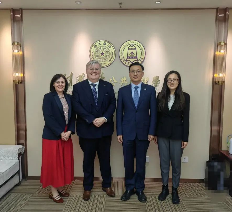 当天下午,随吉姆·麦克唐纳一同来访的思克莱德大学副校长兼人文社科学院执行院长伊恩·里弗斯(Ian Rivers)及人文社科学院学术副院长丽赞·博纳尔(Lizann Bonnar)到访公管学院,与院长朱旭峰、副院长钟玮进行了会面座谈。双方围绕学生交流、合作研究、比较公共政策联合研讨等议题展开了深入交流与探讨。