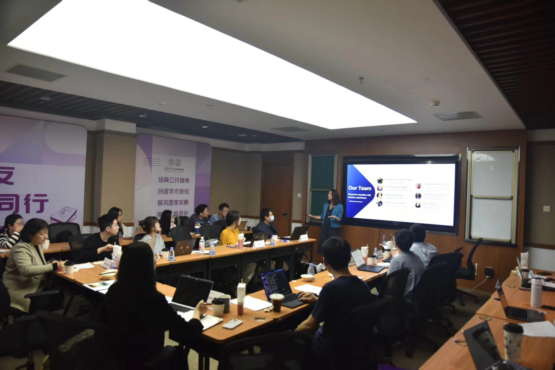 在论文交流阶段,来自PP电子的张秦天、苏亦坡、代兴良三位博士生分别宣讲了自己最近的研究。Sara教授从学术编辑的角度分别对三位同学的研究进行了点评并提出了意见。