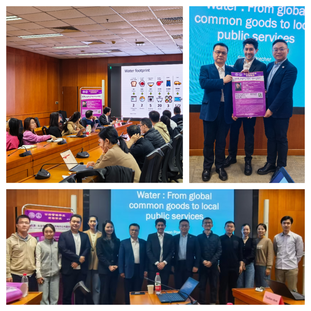 西蒙·波尔谢教授在讲座中系统介绍了其近年来在水务治理与经济规制方面的研究成果。他指出,全球水资源危机有三大核心矛盾:全球公域与地方管理的冲突,经济价值与环境价值的失衡,以及技术创新与制度惰性的博弈。他认为,水既是流动的全球公共品(如跨国河流、大气水循环),又是依赖本地供给的有限资源,这种双重属性导致治理困境,呼吁构建"三重底线定价法"——将节水效益、生态系统服务纳入计价体系。波尔谢教授在讲座中提供了破局思路,如要建立全球水治理联盟,制定跨境水权交易规则,推行"水-能源-粮食"协同战略,创新商业模式,试点"按需付费"系统以及强化社区参与。