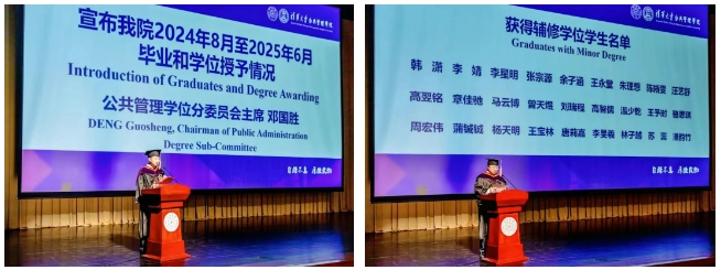 邓国胜宣布了公管学院2024年8月至2025年6月毕业和学位授予情况。