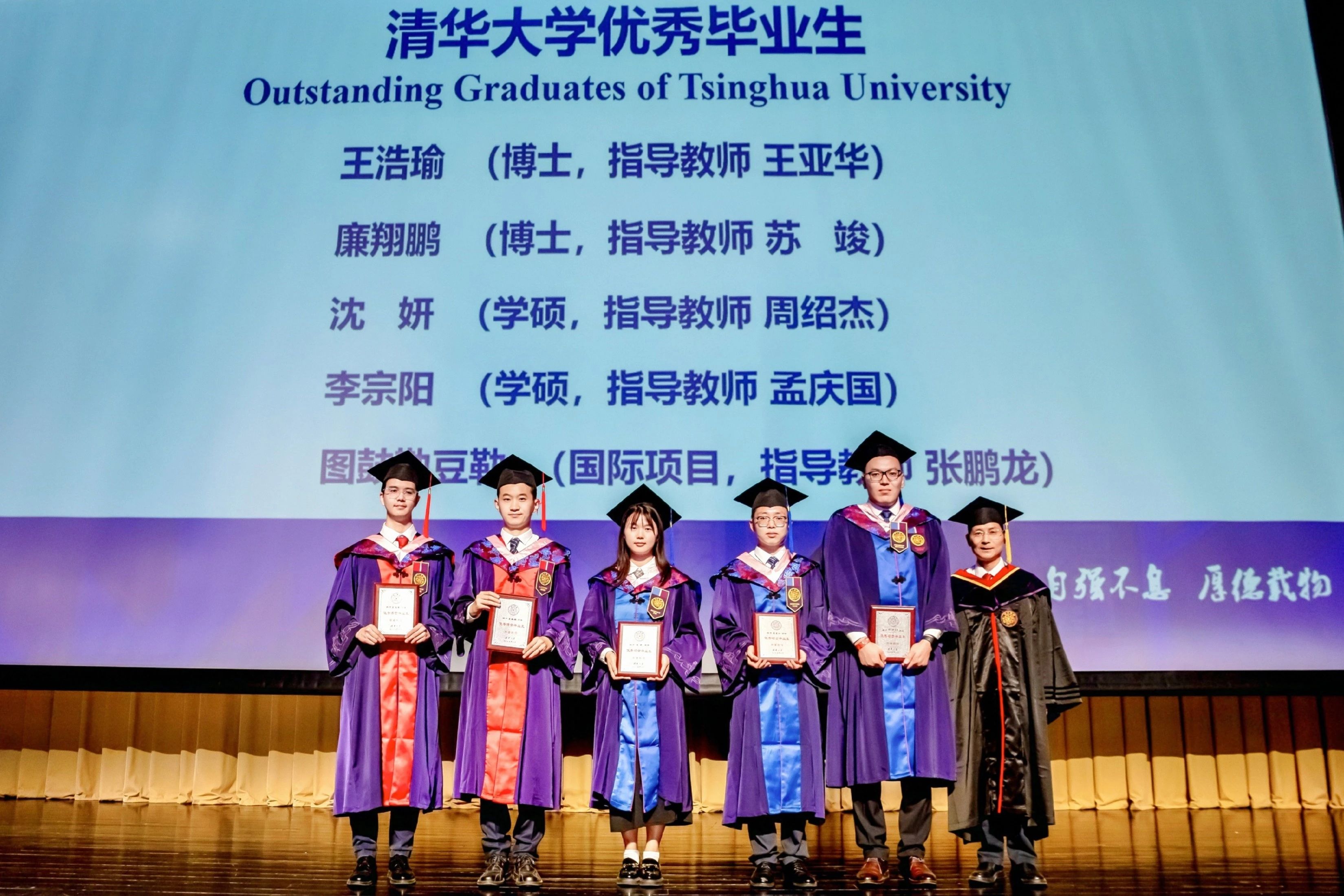 朱俊明宣读优秀毕业生获得者及指导教师名单。共有5位学生获评北京市优秀毕业生,5位学生获评PP电子优秀毕业生称号。彭宗超为优秀毕业生颁发证书。