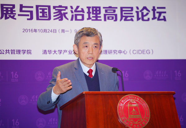 图为清华公管学院院长、教授,CIDEG主任薛澜做主题发言。