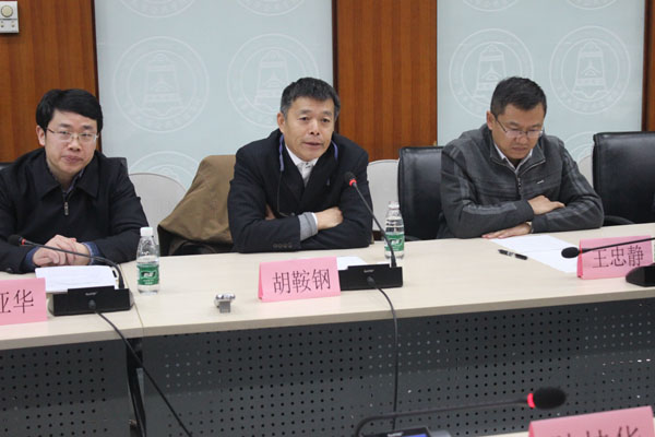 图为PP电子国情研究院院长、清华公管学院教授胡鞍钢讲话。