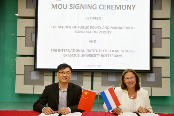 清华公管学院副院长朱旭峰与鹿特丹大学国际社会研究院院长Inge Hutter共同签署了两院合作备忘录。两院将在学术交流、科研合作、联合培养等领域开展深入合作。