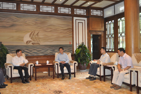 图为校党委副书记李一兵(左二)会见郑栅洁副主任(左一)一行。