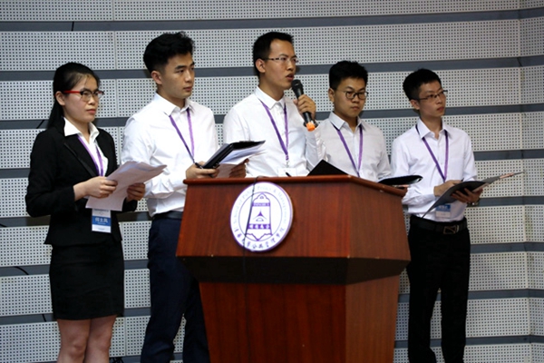 26日晚上进行了硕士生组的决赛,16支硕士生队伍就邻避事件、五水共治、新型城镇化建设、女性农民工权益保护、小区自治等问题,现场展示案例调研结果,并回答了清华公管学院副院长朱旭峰,教授王亚华,副教授李应博三位评委提出的问题,随后评委点评各参赛队伍的表现并提出建议。