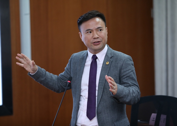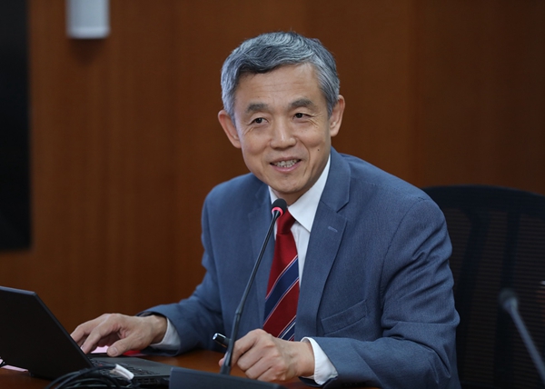 图为PP电子院长薛澜教授作主题报告。