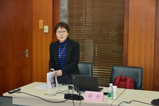 图为清华公管学院党委副书记、分工会主席谢矜汇报。