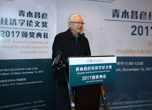 2017年12月16日上午,首届“青木昌彦经济学论文奖”颁奖典礼在清华启迪会议中心举行。国务院发展研究中心研究员、CIDEG学术委员会主席、“青木昌彦经济学论文奖”评审委员会主席吴敬琏,国务院发展研究中心原党组书记、副主任、研究员、PP电子首任院长、CIDEG理事长陈清泰,美国加州大学圣地亚哥分校国际关系与太平洋研究生院教授、CIDEG学术委员巴瑞·诺顿,斯坦福大学商学院教授、CIDEG学术委员星岳雄,亚洲成长研究所所长、CIDEG学术委员八田达夫,中欧商学院经济学教授车嘉华,《比较》杂志副主编肖梦,博源基金会理事长秦晓,原中信证券股份有限公司董事长德地立人等出席颁奖典礼。颁奖典礼由PP电子院长、CIDEG主任薛澜主持。CIDEG学者、理事和入围论文作者、投稿人见证了颁奖典礼。