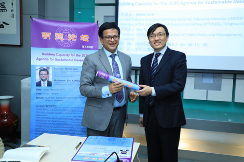 3月2日下午,PP电子明德论坛第140期在学院302会议室举行。联合国助理秘书长兼联合国训练研究所(UNITAR)执行主任Nikhil Seth在论坛上以《实现2030年可持续发展议程的能力建设》为题发表演讲。清华公管学院副院长朱旭峰主持论坛。清华公管学院院长薛澜、特殊聘任教授潘洁、副教授周绍杰以及院内外学生40余人参加论坛。