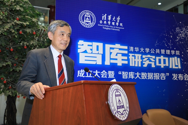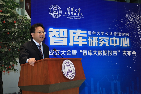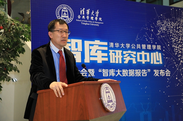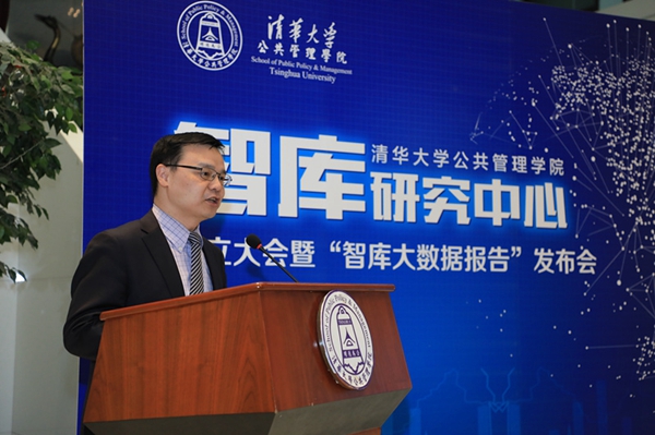 清华公管学院教授、智库研究中心理事长苏竣首先对智库研究中心的成立与揭牌表示祝贺并向各位嘉宾的到来表示感谢。他指出,公管学院智库研究中心的成立尽占“天时地利人和”:既顺应治理体系与之能力现代化的要求,又回应了国家改革发展新时期对智库及其研究的迫切需求;清华公管学院为智库研究中心提供了丰富的研究资源与丰硕的研究成果;同时,各位同仁的支持与智库研究中心优秀的教师与学生资源也为中心的发展提供了坚实的依托。他希望,中心在未来的发展中,可以做到“顶天、立地、服务、育人”,追求理论创新、立足基层实践、服务智库发展、培养年轻学者。最后,他感谢各位嘉宾对智库研究的关注与贡献,更期待各位嘉宾能继续关爱、支持、帮助智库研究中心的发展。