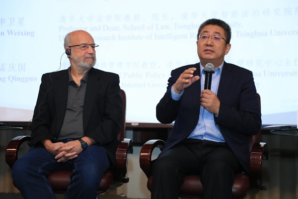 在嘉宾对话环节,沙米尔教授、申卫星教授、孟庆国教授针对数字安全带来的法律问题、伦理价值争议;技术进步为社会运行方式带来的挑战;数字技术发展对科技治理领域提出的新要求等话题展开深入探讨。同时,沙米尔教授针对现场观众关于地理信息、数据加密的提问进行了精彩回答,现场气氛热烈。