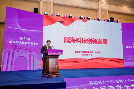 威海市人民政府副市长孙付春作题为“威海科技创新发展”的报告。他指出,威海市自1987年立市之初就将科技创新作为城市发展的动力之源,目前已拥有11家高校院所,综合创新能力稳居山东省前列,正积极争创国家级创新型城市。威海科技创新的发展主要体现在六个方面:一是国家级园区载体特色鲜明,现有三个国家级科技创新载体;二是千里海岸创新链成功建立,形成了一院领导、四平台支撑、N个平台加盟的完整格局;三是高能级平台集聚发展,全市各类技术创新平台达1027家,其中国家级26家,省级355家;四是协同创新体系高效完备,与国内外350多家高校院所建立合作关系,签约产学研合作项目600多项;五是高新技术产业高质量发展,国家高新技术企业连续三年增速超过30%,达到738家,今年有望突破1000家;六是高端科技成果不断涌现,“十三五”期间市本级科技专项资金投入达10亿元,获评省级以上各类科技项目达600余项。