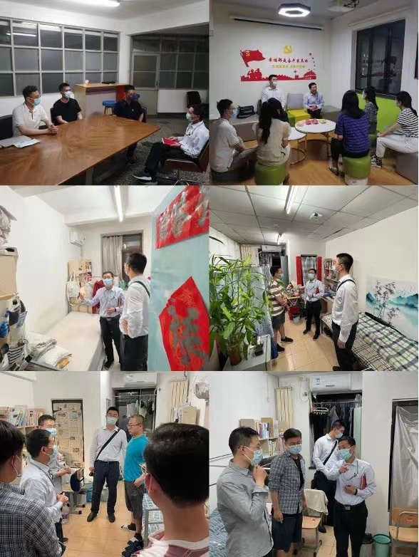 “有多少同学住在这栋楼上?宿舍楼有什么健身、娱乐设施吗?所在宿舍楼是否建立了应急管理机制?”在紫荆14号楼和南区5号楼,两位老师走访了5间博士生宿舍,切身感受大家的日常生活环境,了解同学们的学习科研状态,认真倾听同学们的诉求和建议。