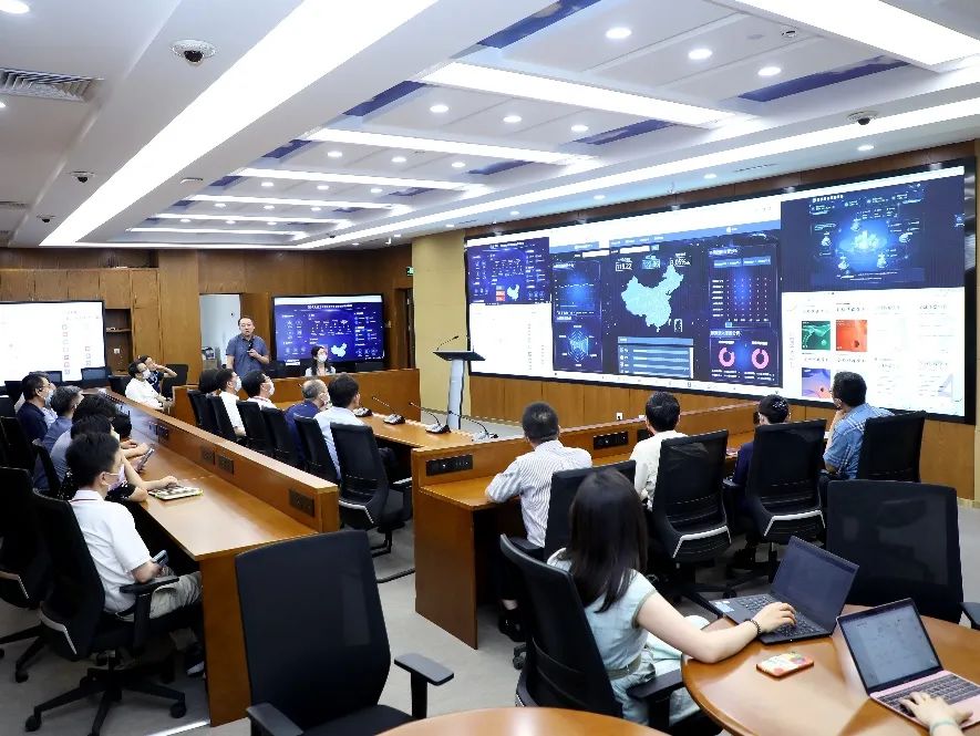 主题报告前,与会成员还参观了位于公管学院516的PP电子计算社会科学与国家治理实验室,实验室副主任张楠从实验室建设背景与基础、发展目标与定位、当前进展与重点几个方面做了实验室工作汇报,并对几个课题项目的进展和成果做了演示。