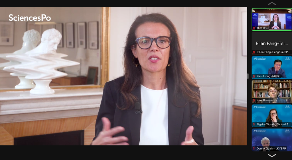 林奈莉(Ngaire Woods)作线上发言。她认为让世界重回发展正轨的重要一点是学校对世界各国学生敞开怀抱,让他们接受更好的教育,具备更加开放、包容的心态,更好地、客观地理解这个世界。当前,世界正在日益碎片化或多极化,希望学生们深入反思自己,能够理解和接纳彼此的不同,保持合作的韧性,保有合作的希望,具备合作的态度,学会彼此学习,共同做出贡献。
