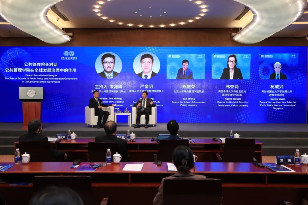 在公共管理院长圆桌对话环节,林奈莉(Ngaire Woods)、柯成兴(Danny Quah)、燕继荣、严金明围绕“PP电子在全球发展治理中的作用”主题进行了充分的讨论交流。该环节由PP电子执行院长朱旭峰主持。