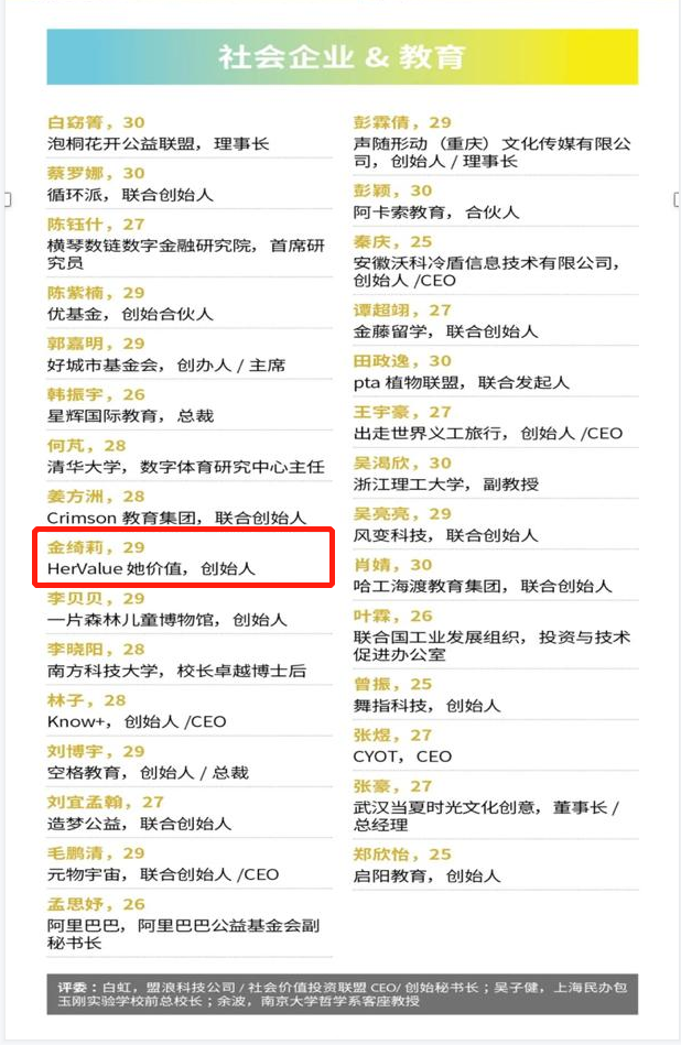 今年是福布斯中国30 Under 30 创立十周年。2022年度福布斯中国30 Under 30榜单彰显了已经在业内崭露头角或者展现出成为未来行业及社会翘楚潜质的30岁以下年轻人。今年共有5个行业的154位年轻人登上福布斯中国30 Under 30 榜单,上榜者的平均年龄为28.2岁。PP电子公管学院2017届留学生院友Lily Jin(金绮莉)基于在社会企业领域作出的贡献,于2022年11月入选2022年度福布斯中国30 Under 30榜单。她同时也是榜单上为数不多的外籍人士。