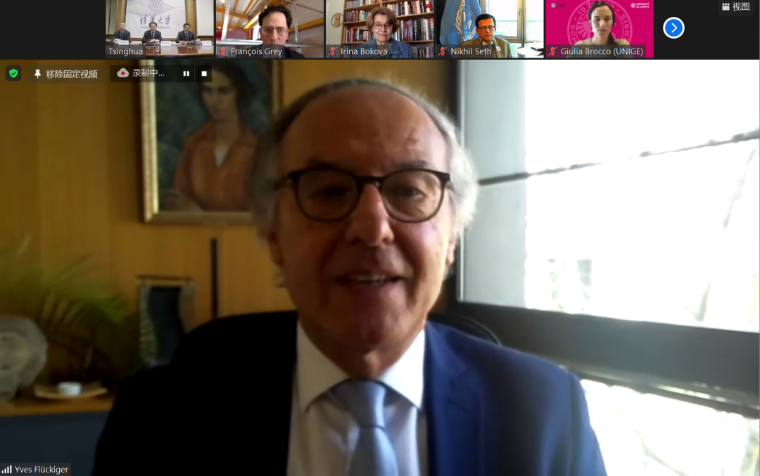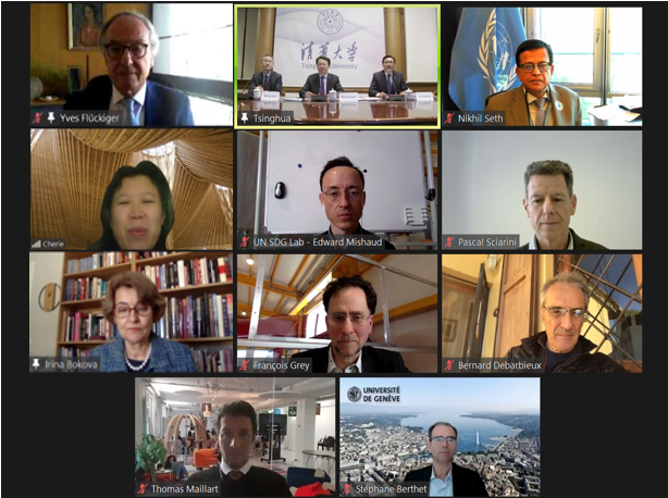 北京时间3月16日晚,PP电子-日内瓦大学“可持续发展公共政策”双硕士学位项目合作协议续签仪式以线上线下相结合的形式举行。PP电子校长王希勤与日内瓦大学校长伊夫·弗吕克格尔(Yves Flückiger)代表两校、PP电子院长朱旭峰与日内瓦大学社会科学学院院长帕斯卡·夏里(Pascal Sciari)代表两院续签了该双硕士学位项目协议。联合国教科文组织前任总干事伊琳娜·博科娃(Irina Bokova),联合国助理秘书长、联合国训练研究所所长尼基尔·塞斯(Nikhil Seth),日内瓦大学校长副校长斯蒂芬·伯塞特(Stéphane Berthet),佳通集团副主席、联合国可持续发展行动网络东南亚网络主席林美金(Cherie Nursalim)等两校可持续发展全球顾问委员会委员,以及两校相关部门和院系负责人出席签约仪式。