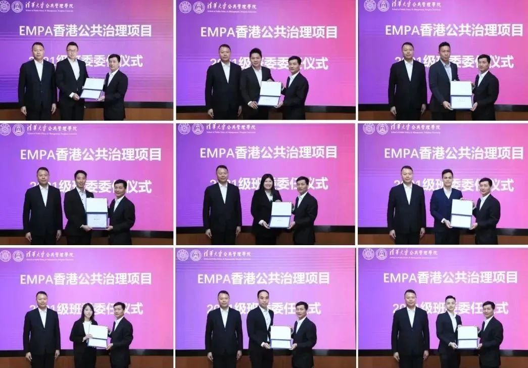 在蔡展鹏处长见证下,彭宗超书记向班委会9位班委颁发了委任证书,完成了简单而庄重的EMPA香港公共治理项目2021级班委委任仪式。