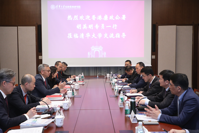 随后,与会双方进行了充分讨论。胡英明专员对研究院开展的各项工作表示肯定,并就未来与研究院在学科建设、科学研究、人才培养、专业培训等方面的合作表示期待。北京大学中国政治学研究中心何增科教授表示,期待与香港廉政公署增进交流合作,共同开展具有价值的研究。中国人民大学反腐败与廉政政策研究中心主任毛昭晖教授表示,香港的反贪经验对于促进内地反腐败国际合作方面的研究工作具有启示意义。中央纪委国家监委港澳台事务办公室副主任欧阳柏青表示,内地与香港在携手打击腐败方面有着共同需要,此次会见对于深化两地反腐败交流合作正当其时。香港中联办警联部部长陈枫表示,香港廉署代表团此行有利于推动内地高校与香港廉署的交流合作。