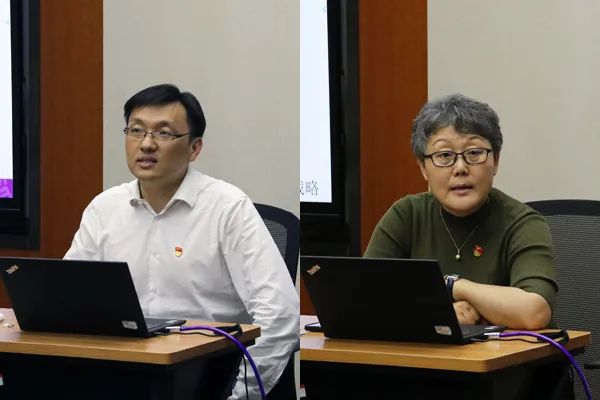 朱旭峰(左一)、谢矜(右一)做重点发言