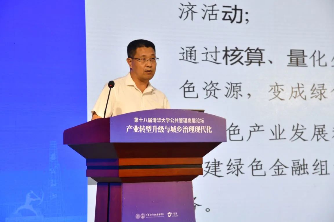 信阳绿色金融研究院院长徐汉国以“信阳绿色崛起的思考与实践”为题作报告。他首先介绍了信阳的资源禀赋和本底条件。他指出,将绿色金融、科技发展、创新体系建设、城镇化发展相结合,以实现信阳内源式崛起。信阳现代化的路径包括三个方面:一是发挥革命老区自身特色优势,将“红色+绿色”资源转化为金山银山;二是促进碳汇供给与需求有效对接,探索实现双碳目标绿色发展新模式;三是赋能内陆地区培育循环优势,助推形成新发展格局新优势。信阳的绿色崛起实践体现在生态产业、花园城市、乡村振兴、交旅文创和品质生活五个层次。他表示,信阳绿色金融研究院将进一步致力于绿色金融领域的研究和创新,培养专业人才,促进绿色金融产品和服务的创新与推广。