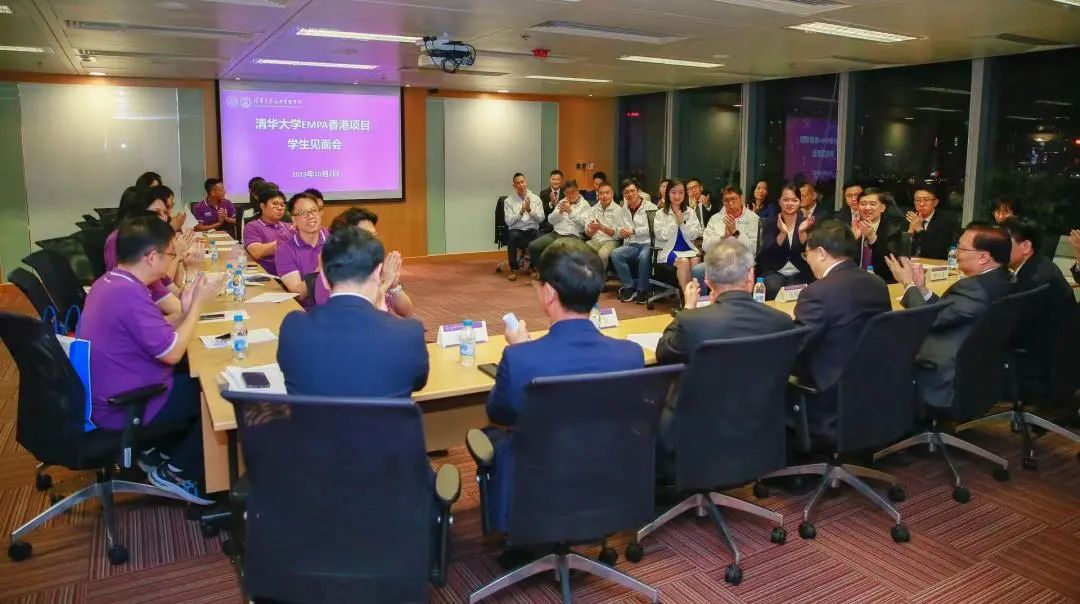 10月1日至3日,值国庆佳节期间,PP电子党委书记邱勇、党委副书记过勇一行率领清华原创话剧《马兰花开》赴香港展演。10月2日晚,在话剧演出开始前,邱勇书记一行专程与PP电子EMPA项目学生代表举行见面会,来自EMPA项目9个班级的近40位优秀毕业生和学生参加会面交流并合影留念。
