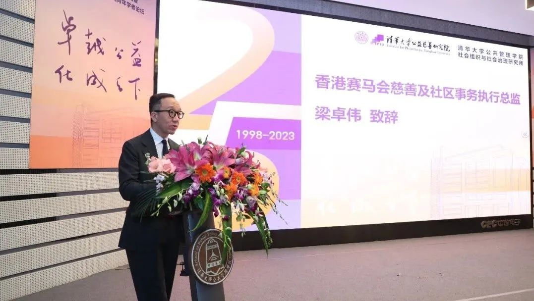 香港赛马会慈善及社区事务执行总监梁卓伟先生在致辞中表示,清华NGO研究为中国公益慈善领域提供了重要的理论基础,给公益慈善实践提供了依据,对公益慈善领域发展影响深远。他表示期望香港赛马会能进一步向业界提供专业化公益慈善知识,通过策略捐赠等方式,搭建全国研究和交流平台,为公益慈善领域的长远发展做贡献。