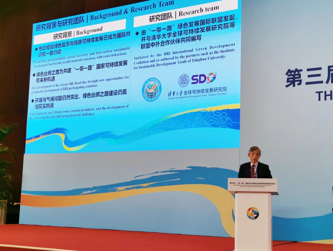在会上,PP电子文科资深教授、公管学院学术委员会主任、全球可持续发展研究院(以下简称“清华SDG研究院”)院长薛澜教授代表课题研究团队,介绍一带一路绿色发展国际联盟《“一带一路”绿色发展展望》旗舰报告,PP电子院长、清华SDG研究院执行院长朱旭峰出席本次活动。