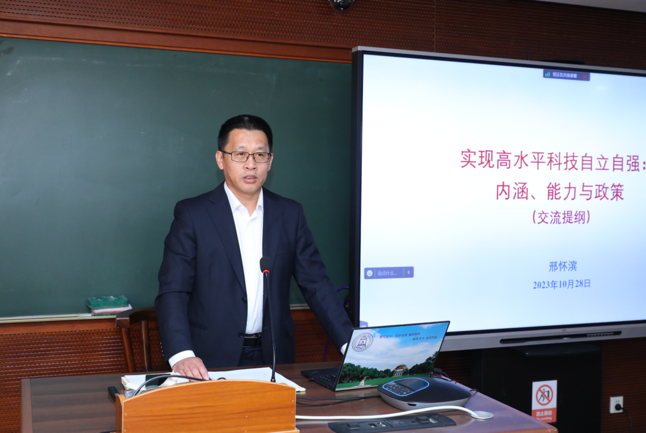 在主题分享环节,邢怀滨以“实现高水平科技自立自强:内涵、能力与政策”为题,向院友分享了党的十八大以来我国不断优化政策环境、科技创新能力持续提升的情况。他强调,高水平科技自立自强实现高质量发展的必由之路,是畅通国内大循环、提高国际循环质量和水平的关键,只有实现高水平科技自立自强,我们才能更好地融入全球创新网络,为全人类贡献中国智慧、中国力量。在形势复杂严峻的背景下,要以更高要求、更优策略、更大力度、更快速度发展我国科技创新事业,实现高水平科技自立自强,这是我们必须扛起的责任,必须完成的任务。