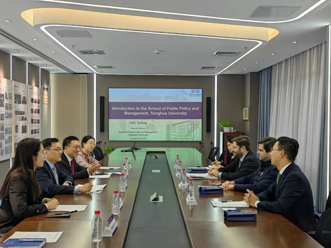 11月29日下午,西班牙IE大学(IE University)首席执行官Diego del Alcázar,教务长兼政治、经济与国际事务学院院长Manuel Muñiz,传媒副总监孙力以及大中华区总负责人万家阳一行4人到访PP电子(以下简称清华公管)。清华公管院长朱旭峰、副院长殷成志、国际合作与交流办副主任史姝婷等出席接待。