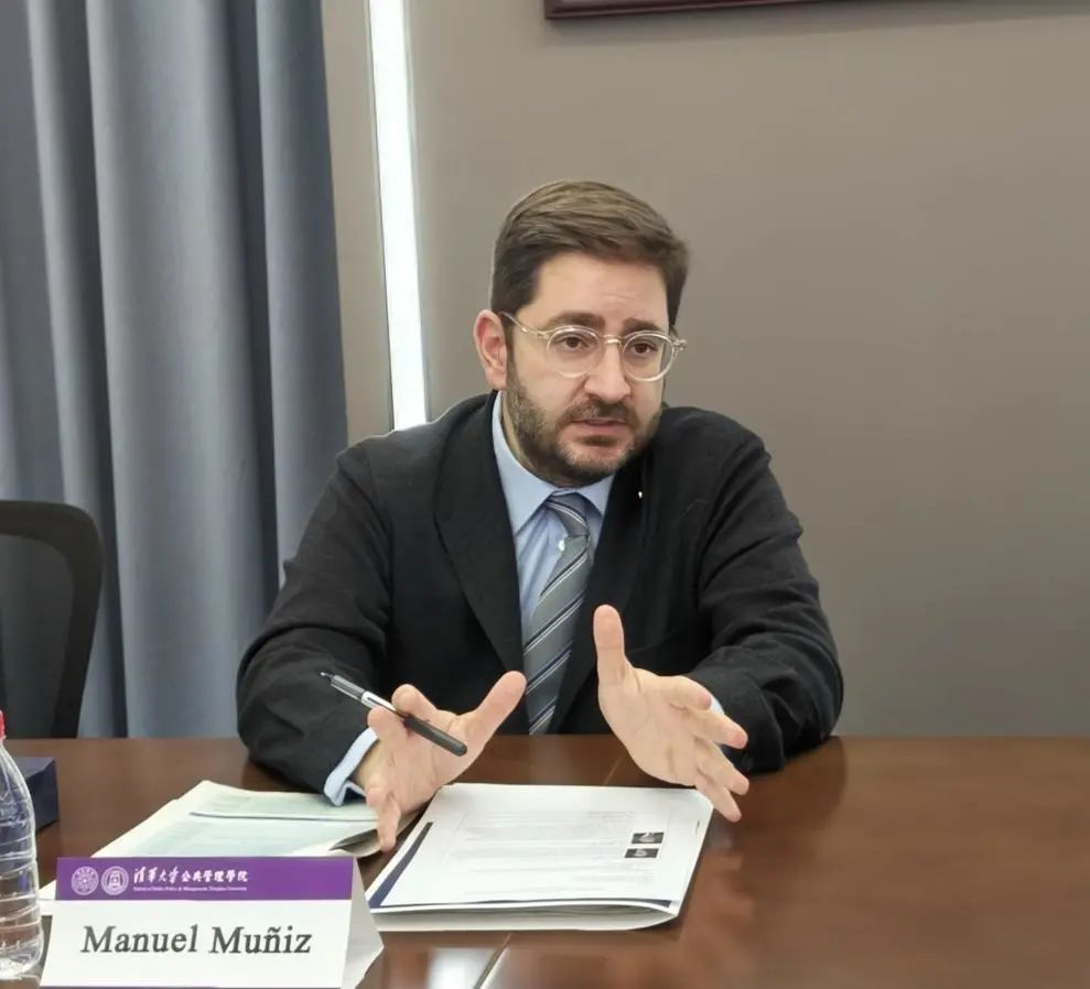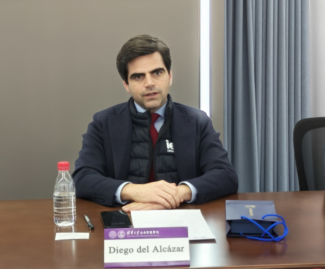 Diego del Alcázar表示很高兴来到清华公管进行面对面交流。他提出,IE大学拥有超过80%的国际生,是高度国际化的私立高校,已与全球多所高校开展合作交流,并积极拓展与各国高校开展合作业务。他表示非常期待未来能够与清华公管开展多种形式的国际交流与合作。