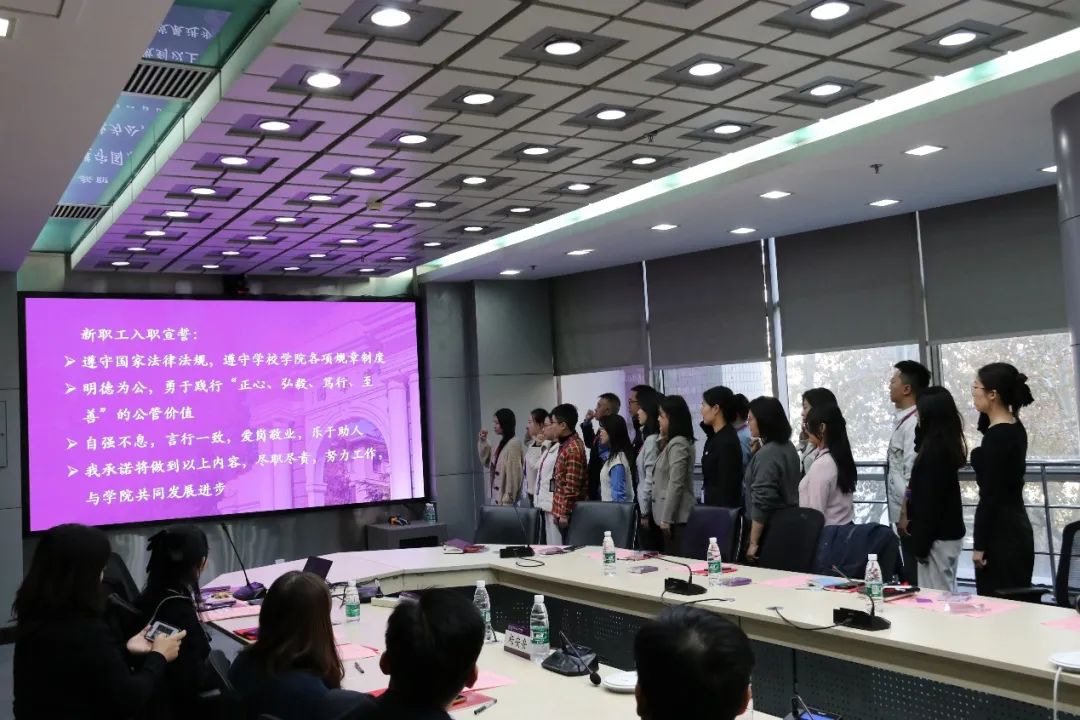 在宣誓环节,新教职工代表张政,带领全体新教职工庄严宣誓。在铮铮誓言中,新教职工深刻认识到自己肩负的职责和使命。