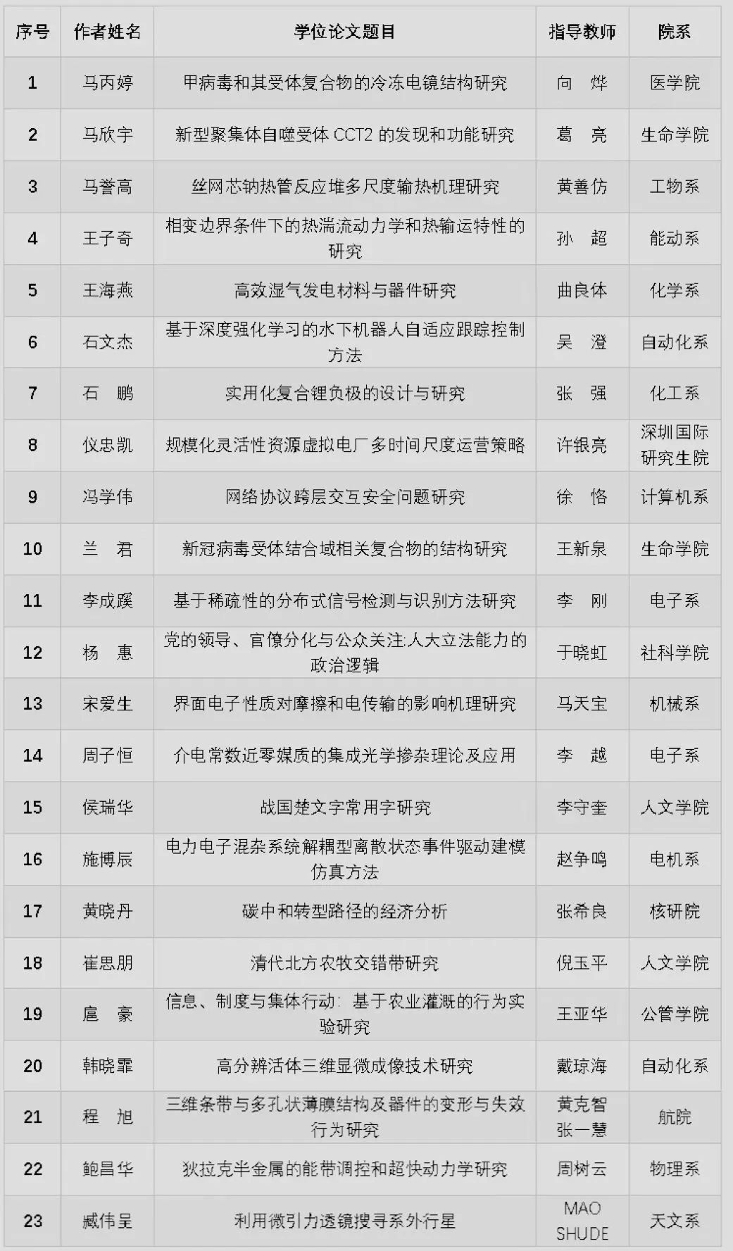 2023年北京市优秀博士学位论文名单 (按论文作者姓氏笔画排序)