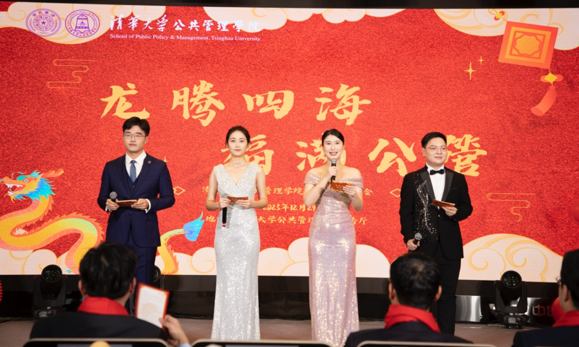 2023年12月29日晚,“龙腾四海·福满公管”公管学院2024年新年晚会在学院报告厅隆重举行。学院党委书记彭宗超,院长朱旭峰,副院长王亚华、殷成志,党委副书记兼副院长谢矜,党委副书记周绍杰,学院教师蓝志勇、钟玮、张鹏龙、张芳、唐啸,教职工和学生及师生家属等近200人欢聚一堂,共庆元旦佳节,一同传递新年祝福。